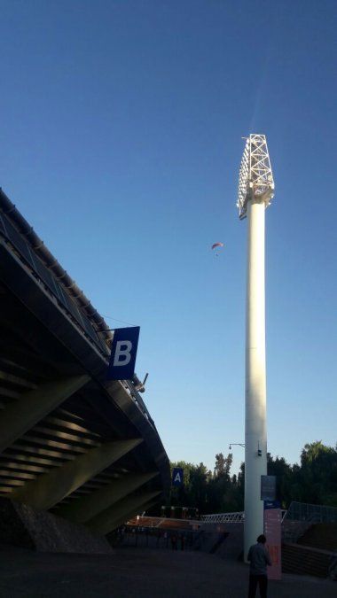 Desde el cielo el curioso tuvo una panorámica perfecta de la fiesta que se vivía en las gradas del estadio provincial. ¡Y no pagó entrada!