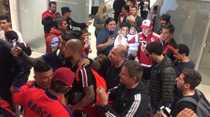 Los hinchas millonarios se apiñaron en la puerta del Hotel Bourbon, donde el plantel quedó concentrado a la espera del partido, fueron en su mayor parte componentes de la Filial Asunción, pero también hubo varios que se acercaron por su cuenta para darle aliento al plantel. De hecho los parciales riverplatenses ya agotaron las localidades que les pusieron a disposición para el partido del próximo martes a las 21.45.