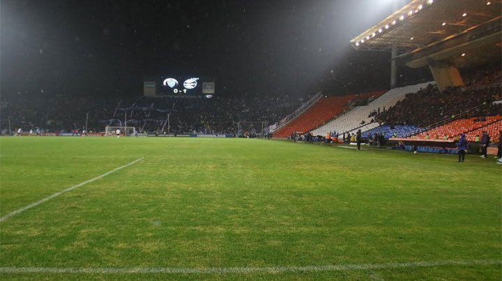 Pero a pesar de la gran cantidad de agua que cayó de manera intermitente en el Parque, el estado del campo de juego del Malvinas se conservó impecable.