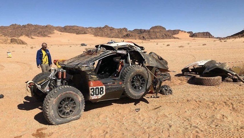 El piloto emiratí Sheikh Khalid Al Qassimi protagonizó uno de los grandes sustos en el Dakar 2020 tras sufrir un brutal accidente con su auto.