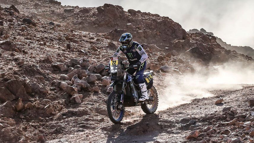 Con la Yamaha del Monster Energy Rally Team, Caimi está 15º en la general ya que tiene un tiempo acumulado de 12h. 28' 42" (a 1h 10' 46" de la punta).