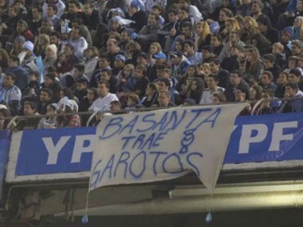 “Garcé, traé alfajores” decía aquel trapo que quedó en la historia y que hoy, es el antecedente del “Basanta, traé garotos” que se colgó anoche en el Monumental.