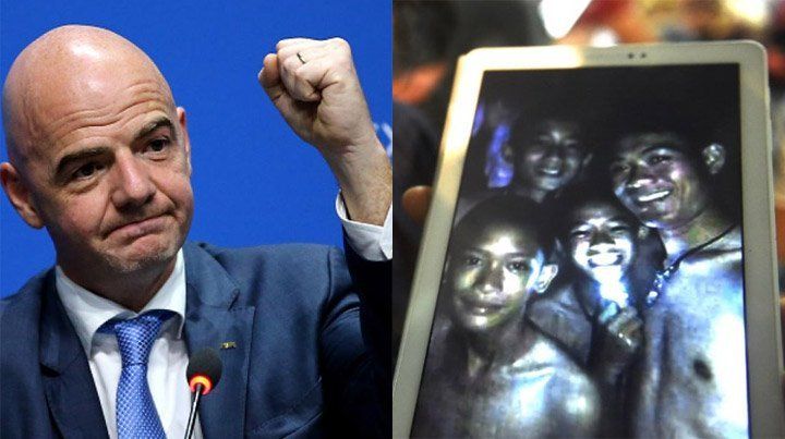 El presidente de la FIFA, Giani Infantino, expresó su esperanza de que los doce niños futbolistas tailandeses atrapados en una cueva con su monitor sean rescatados sanos y salvos y les invitó a asistir a la final del Mundial de fútbol, que se jugará en Moscú el 15 de julio.