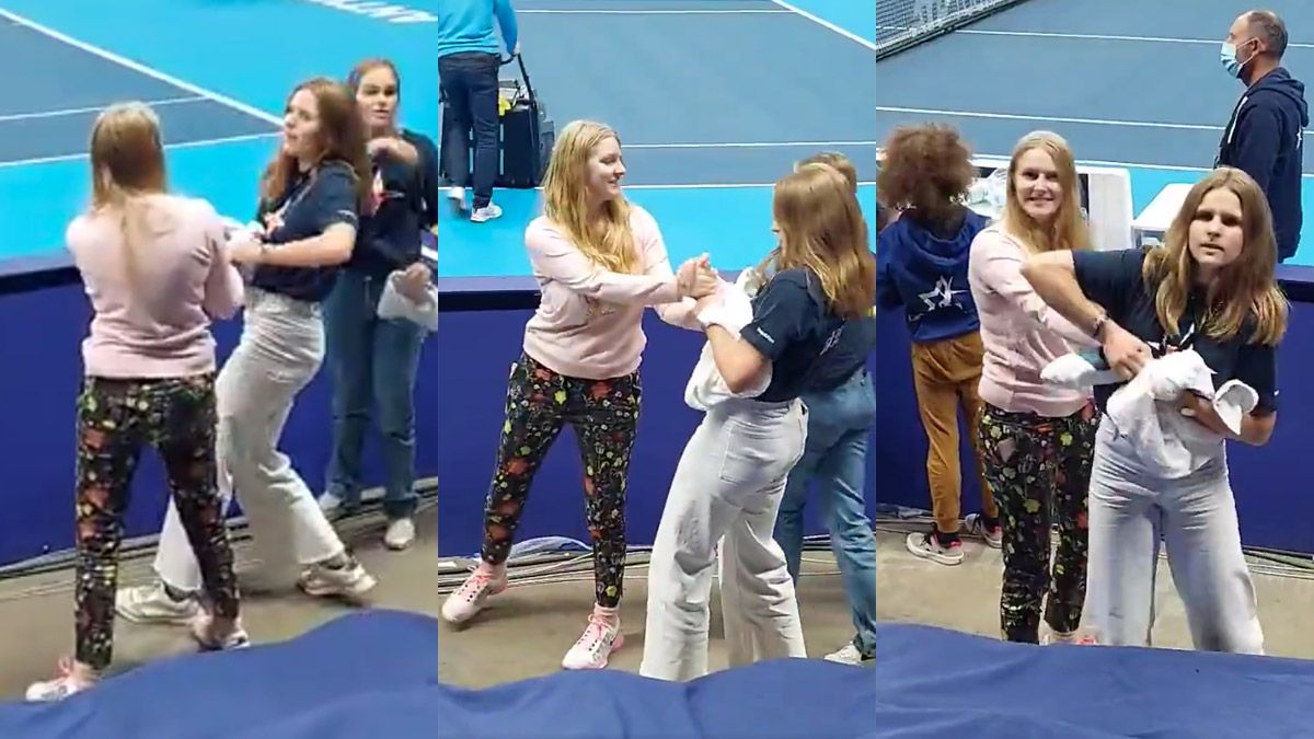 El “trofeo” tuvo una larga disputa entre dos chicas que presenciaron el partido. Se generó un momento de mucha tensión entre todos los presentes, ya que ambas fanáticas del tenis comenzaron a tironear de la toalla, cada una de un extremo, en una contienda que duró como 1 minuto.