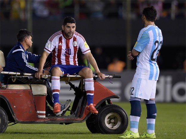 No lo pueden creer los hinchas de San Lorenzo. Néstor Ortigoza, pieza fundamental en el equipo, se lesionó en el primer tiempo de Paraguay- Argentina y, si bien aún no hay un diagnóstico confirmado, se especula con una dolencia muscular.Si los estudios médicos aseguran un desgarro, el mediocampista deberá estar casi un mes alejado de las canchas por lo que se perderá el final del torneo local, en el que San Lorenzo lucha por el título con Boca, Racing y Rosario Central.