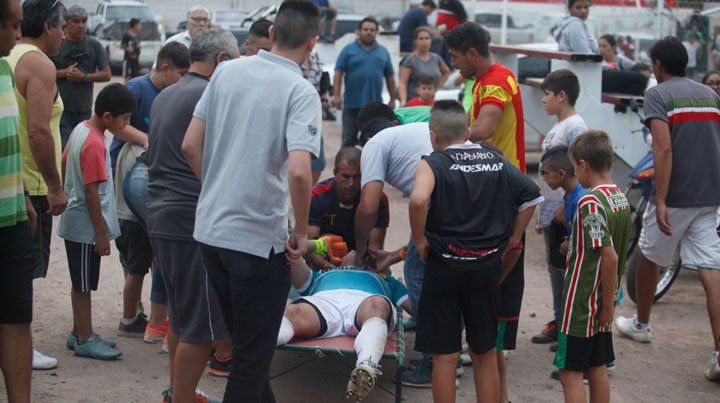 Mientras tanto la policía llamó a la ambulancia, que no estaba en el estadio, con el pedido de código rojo.Tello fue sacado del campo de juego en la camilla fuertemente conmocionado y en medio de un gran nerviosismo por el duro choque.Antes de que llegara la ambulancia y ya en la puerta del estadio, el portero volvió a convulsionar, lo que aumentó la ya gran preocupación que había.Luego de ser compensado por el servicio de emergencia, lo trasladaron al hospital Central. Allí le realizaron una tomografía en su cabeza y no arrojó lesiones. Quedó internado en observación.Antecedente Leonardo Murialdo ya había pasado por momentos duros como el de este martes, recordemos que el año pasado Patricio Riquero sufrió rotura de maxilar en un partido liguero."Ante una situación así nadie piensa en lo deportivo. Damián quedó internado en observación" Oscar Giacomelli, técnico de Murialdo.