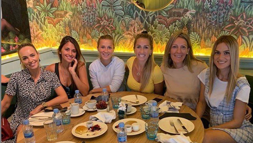 "Las quiero chelo lemon" expresó la esposa de Lionel Messi compartiendo una imagen junto a Sofi Balbi, Elena Galera y Romarey Ventura, que son las esposas de Luis Suárez, Sergio Busquets y Jordi Alba.