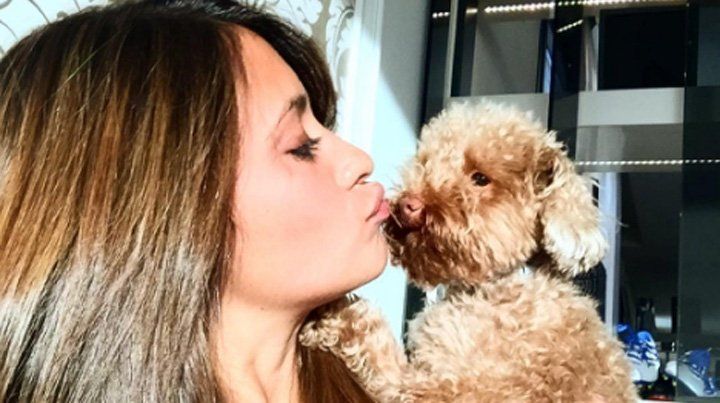 "Toby controlando todo por aca", publicó la morocha en su cuenta de Instagram, en referencia al pequeño caniche, que observa la situación con curiosidad.