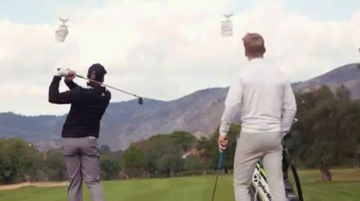 El golfista Sergio García, un reconocido hincha del Real Madrid, tuvo que enfrentarse a un reto que le preparó la firma que patrocina Adidas TaylorMade en el cual debía derribar tres drones.