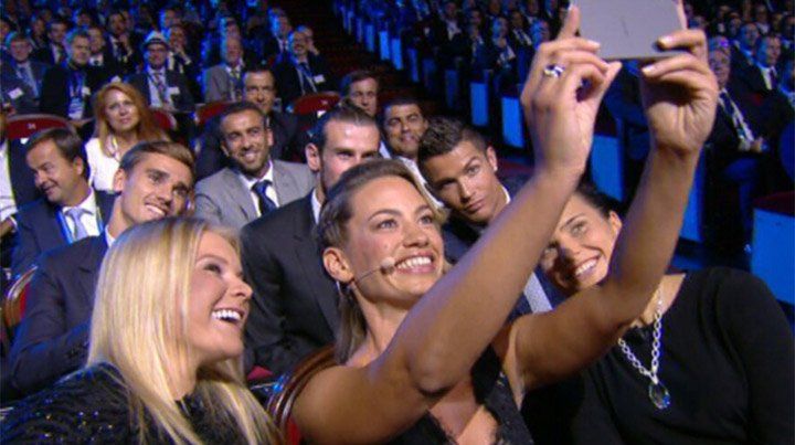 La periodista y presentadora de televisión francesa Anne-Laure Bonnet se sentó justo en la fila delantera a los asientos de los tres nominados al Mejor Jugador de la pasada campaña de la máxima competición europea de fútbol.