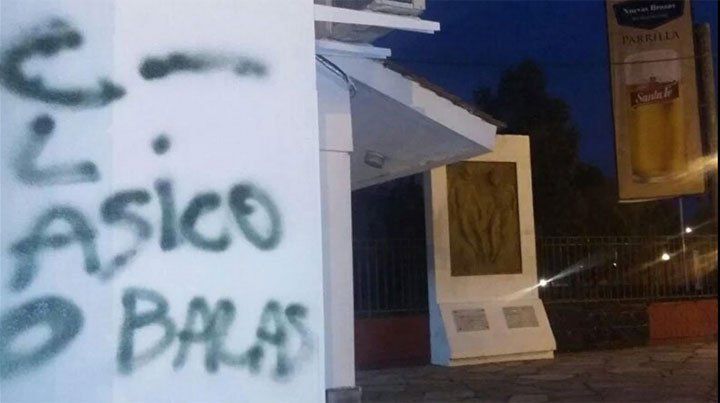 La sede de Colón amaneció este lunes con la pintada intimidatoria "Clásico o balas", en la previa al clásico del sábado ante Unión, de visitante, por la 12da fecha del campeonato de Primera División, que el equipo Sabalero afrontará con un nuevo técnico tras la salida de Darío Franco.