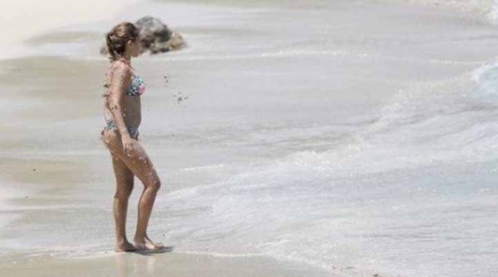 Un grupo de fotógrafos encontró a la pareja, junto a sus hijos Thiago y Mateo, disfrutando al máximo del sol y el mar. Si bien fue noticia la pequeña "guerra de arena" que mantuvieron en su luna de miel, todos quedaron asombrados por la figura de la flamante esposa del futbolista.