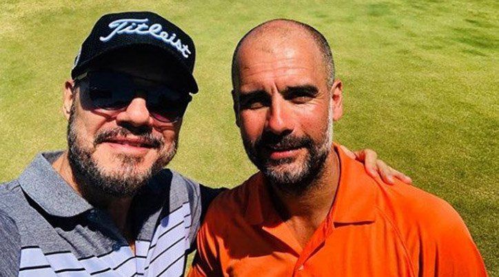 El entrenador catalán Josep Guardiola, de visita en Argentina, jugó este viernes un partido de golf con el empresario y conductor de televisión Marcelo Tinelli.