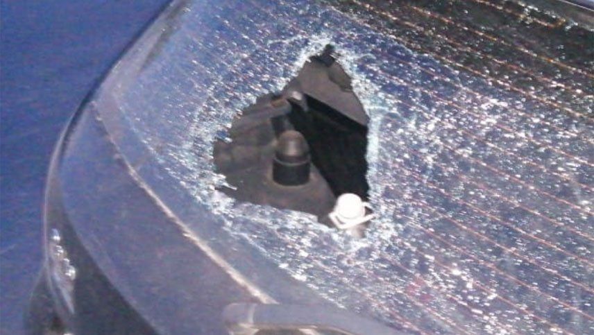 En el lugar se observaron vidrieras rotas, tanto de la sede del club como de comercios cercanos, y autos destrozados.