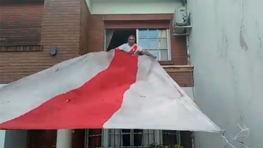 Los simpatizantes de River salieron este domingo a alentar desde sus balcones al "Millonario", en plena cuarentena por la pandemia del coronavirus, tras la convocatoria realizada por la Subcomisión del Hincha a través de las redes sociales.