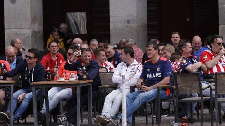 Un puñado de hinchas del PSV Eindhoven, equipo holandés que se enfrentó al Atlético Madrid por la Champions League, protagonizó un lamentable incidente en la Plaza Mayor de Madrid, en la previa del partido que luego perdieron por penales.