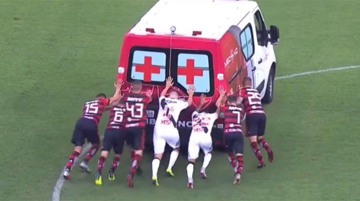 Por la 25° jornada del Brasileirao, Vasco da Gama y Flamengo empataron 1 a 1 y cuando ingresó la ambulancia para llevarse a Bruno Silva, que quedó lesionado, se dio una curiosa imagen.