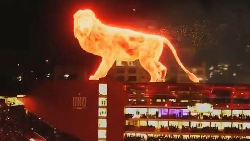 Estudiantes vivió su jornada de fiesta. Este sábado inauguró su estadio en 1 y 57, La Plata, y los hinchas del club no se lo quisieron perder y lo que llamó la atención fue un león de fuego que apareció en el estadio, que caminó por la platea.