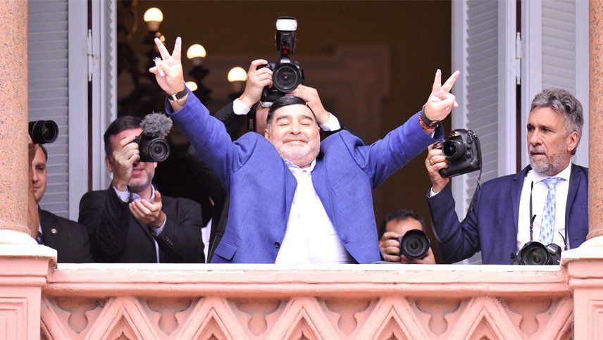 "Neoliberalismo nunca más. Volvimos. (Mauricio) Macri te vas a tener que ir a vivir a Tailandia. No vuelven más", sostuvo Maradona al hablar desde el histórico balcón de la Casa Rosada con una réplica en miniatura de la Copa del Mundo que ganó en el Mundial de México de 1986.