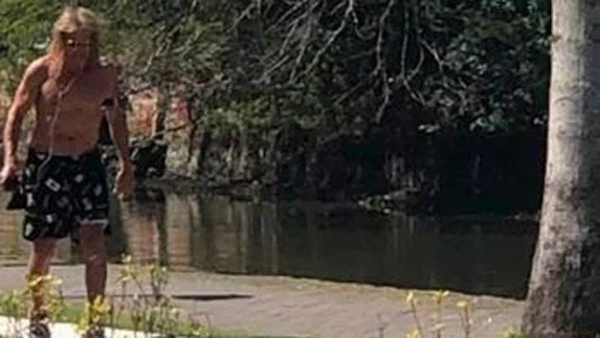 El periodista Tomás Dente publicó la primera imagen y el video del rubio caminando por las calles cariocas con su torso en cuero y escuchando música y haciendo pasadas de velocidad por la calle.