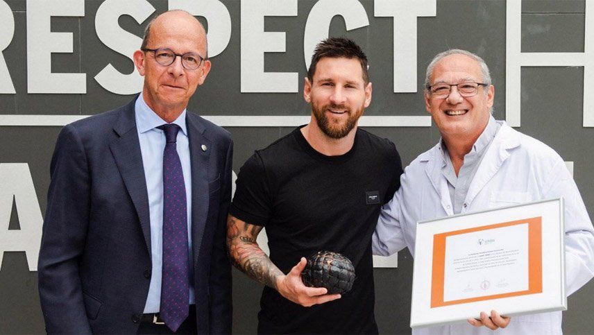 El astro argentino del Barcelona recibió el balón hecho a mano en cuero por jóvenes de la comunidad de Chicomo, al sudeste de Mozambique, de parte del presidente mundial de Scholas, el también argentino José María del Corral, quien lo visitó en la ciudad deportiva del club blaugrana.