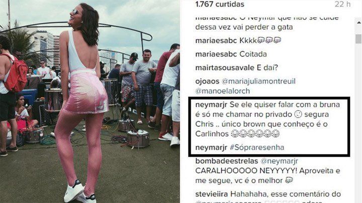 Neymar se puso celoso y no tuvo problemas en expresarlo a través de las redes sociales. El cantante Chris Brown comenzó a seguir a la novia del brasileño, Bruna Marquezine, en Instagram y esta acción no le gustó nada al futbolista del Barcelona que le puso los puntos al estadounidense en un comentario.