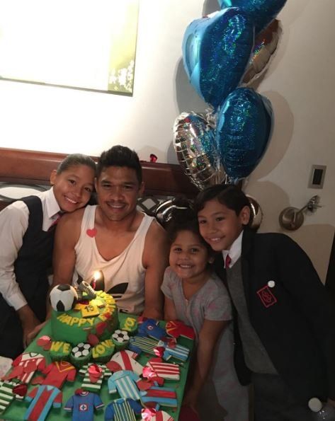 El colombiano recibió el amor de sus hijos y una grata sorpresa: una torta decorada con las camisetas de casi todos los equipos por los que pasó en su carrera.