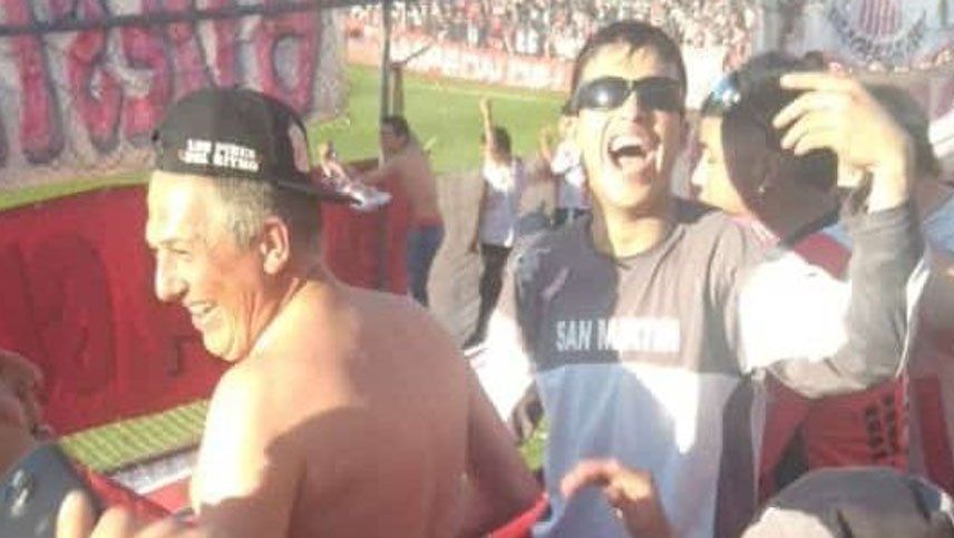 En diversas imágenes que circulan por redes sociales, se puede ver a Sagra subido al paravalanchas junto a los hinchas del "Santo".