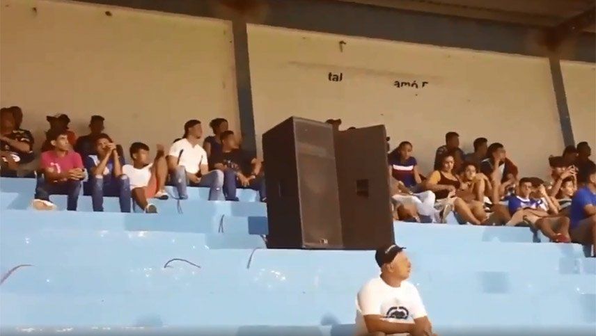 La barra del Metapán, equipo de El Salvador, no estuvo presente en el estadio por problemas internos y decidió poner parlantes para que no se note su ausencia.