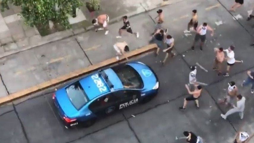Una vez concluido el cotejo, que ganó la institución de Villa Crespo por 3-2, los parciales 'albos' intentaron copar la tribuna sobre la calle Miranda, ocupada por jugadores y allegados de la entidad visitante.