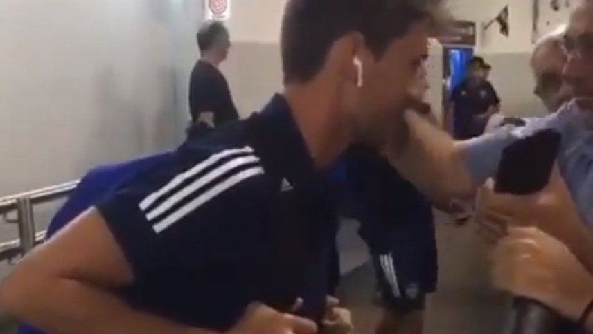 El ex jugador de Unión de Santa Fe se detuvo mientras ingresaba a la cancha y el religioso le hizo la señal de la cruz en la frente.