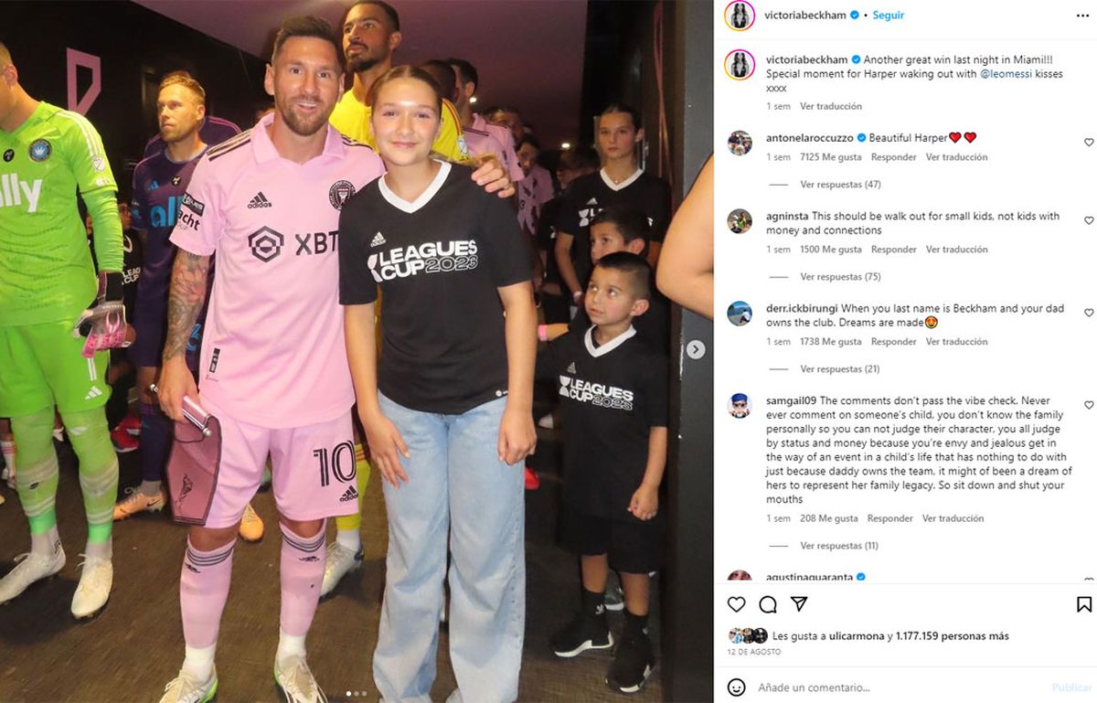 Victoria Beckham, sin dudarlo, posteó una foto en su cuenta de Instagram de su hija junto a Lionel Messi, justo antes de saltar a la cancha y jugar la final de la Leagues Cup 2023.