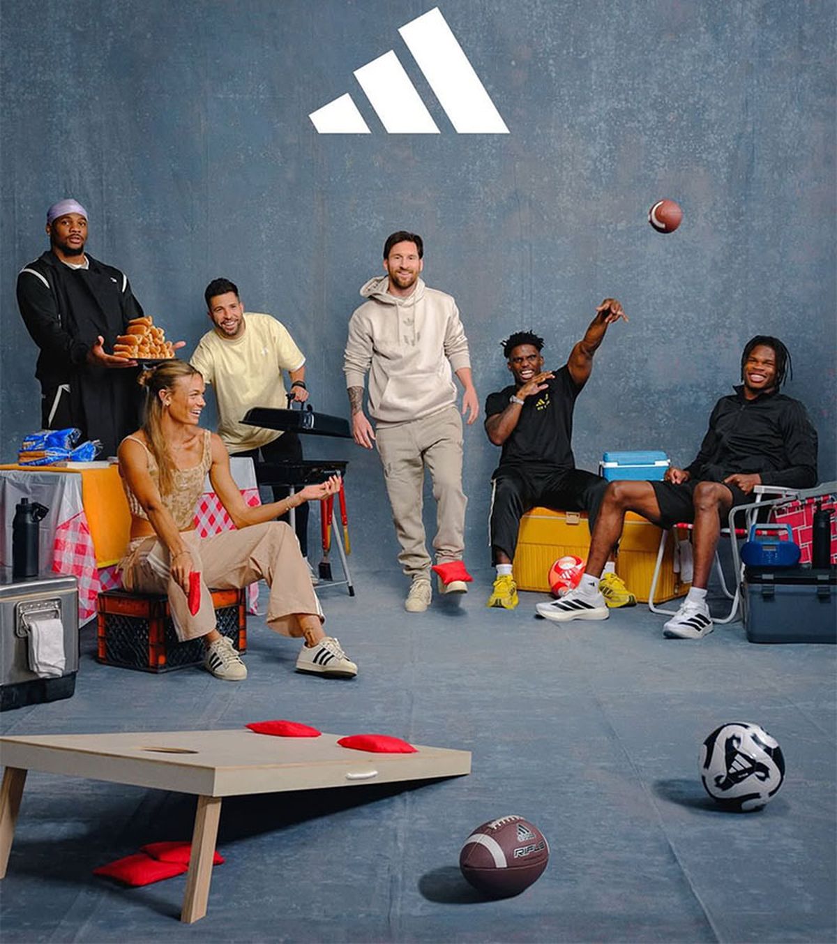 Leo llegó vestido con un conjunto Adidas que no solo es uno de sus patrocinadores sino que lo convocó para un aviso publicitario publicado para el Super Bowl en el que aparece junto a otros embajadores de la marca.