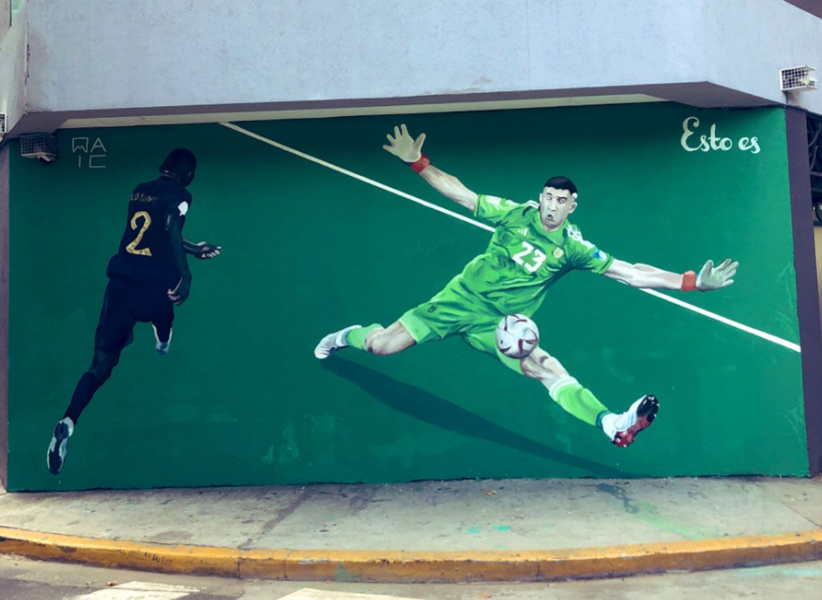 En estos días se descubrió un mural ubicado en la esquina de Gorriti y Atacalco, en el barrio de Palermo, del artista Maic Bruera, en el que se recrea la excepcional atajada con la que evitó lo que hubiera sido el cuarto gol de Francia en la final de Qatar 2022.
