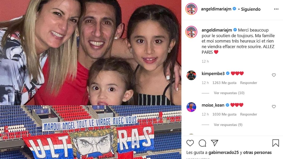 El futbolista argentino Ángel Di María, quien se desempeña en el París Saint Germain francés, le agradeció a los hinchas del equipo parisino por el apoyo que recibieron él y su familia tras el robo que sufrió el pasado domingo en su casa de la capital francesas.