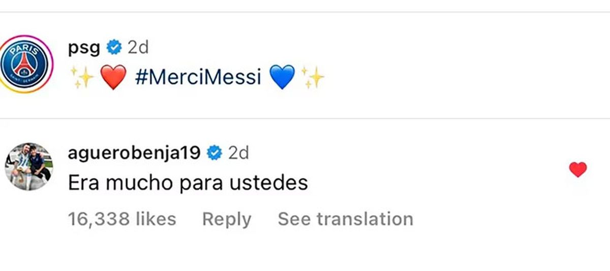 En este último posteo del PSG, quien se expresó por la salida de Messi fue Benjamín Agüero, hijo del "Kun".