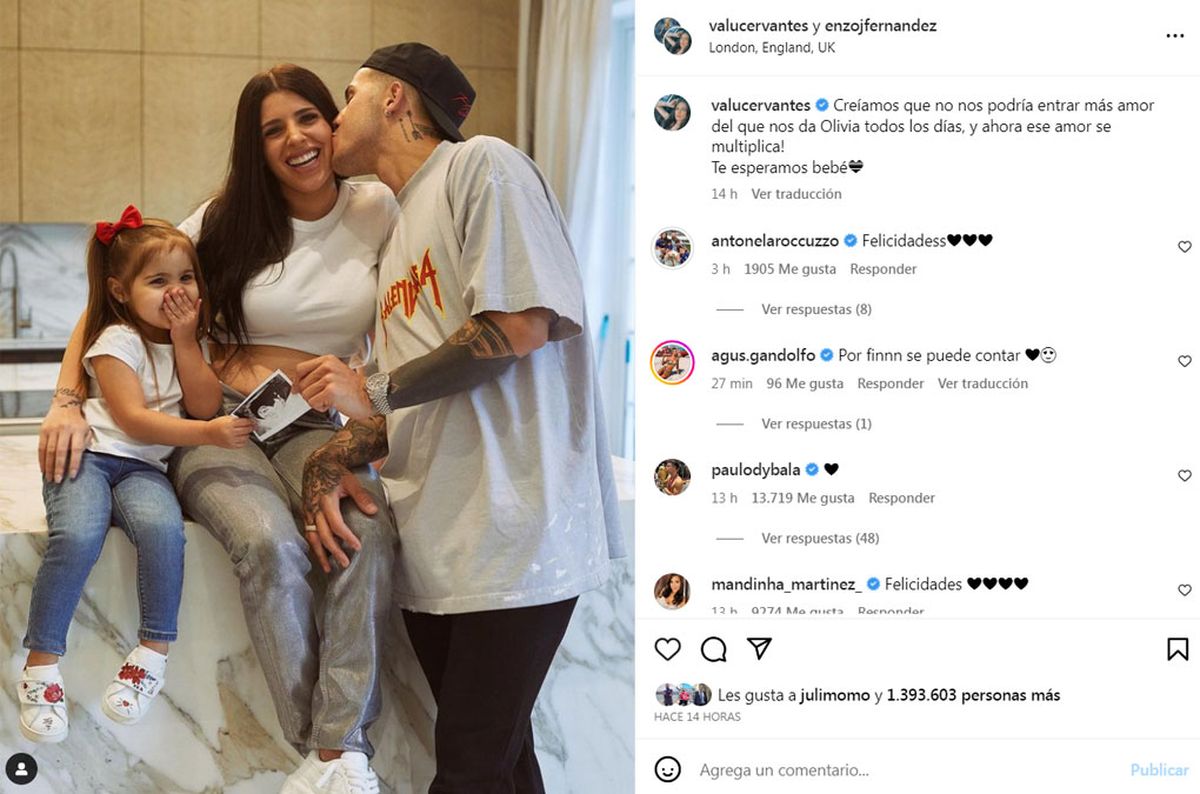 Enzo Fernández y su pareja, Valentina Cervantes, anunciaron en las redes sociales que serán padres por segunda vez.