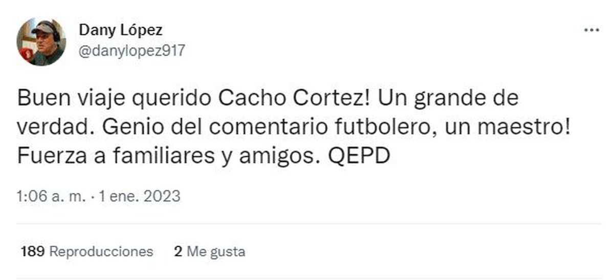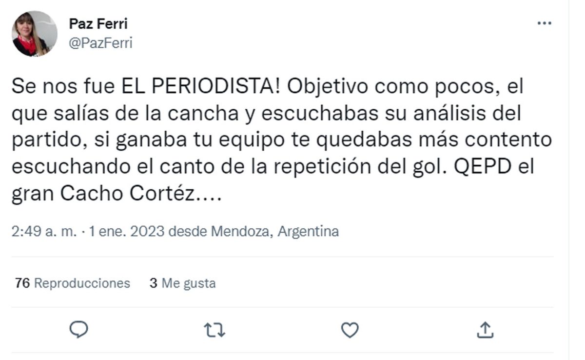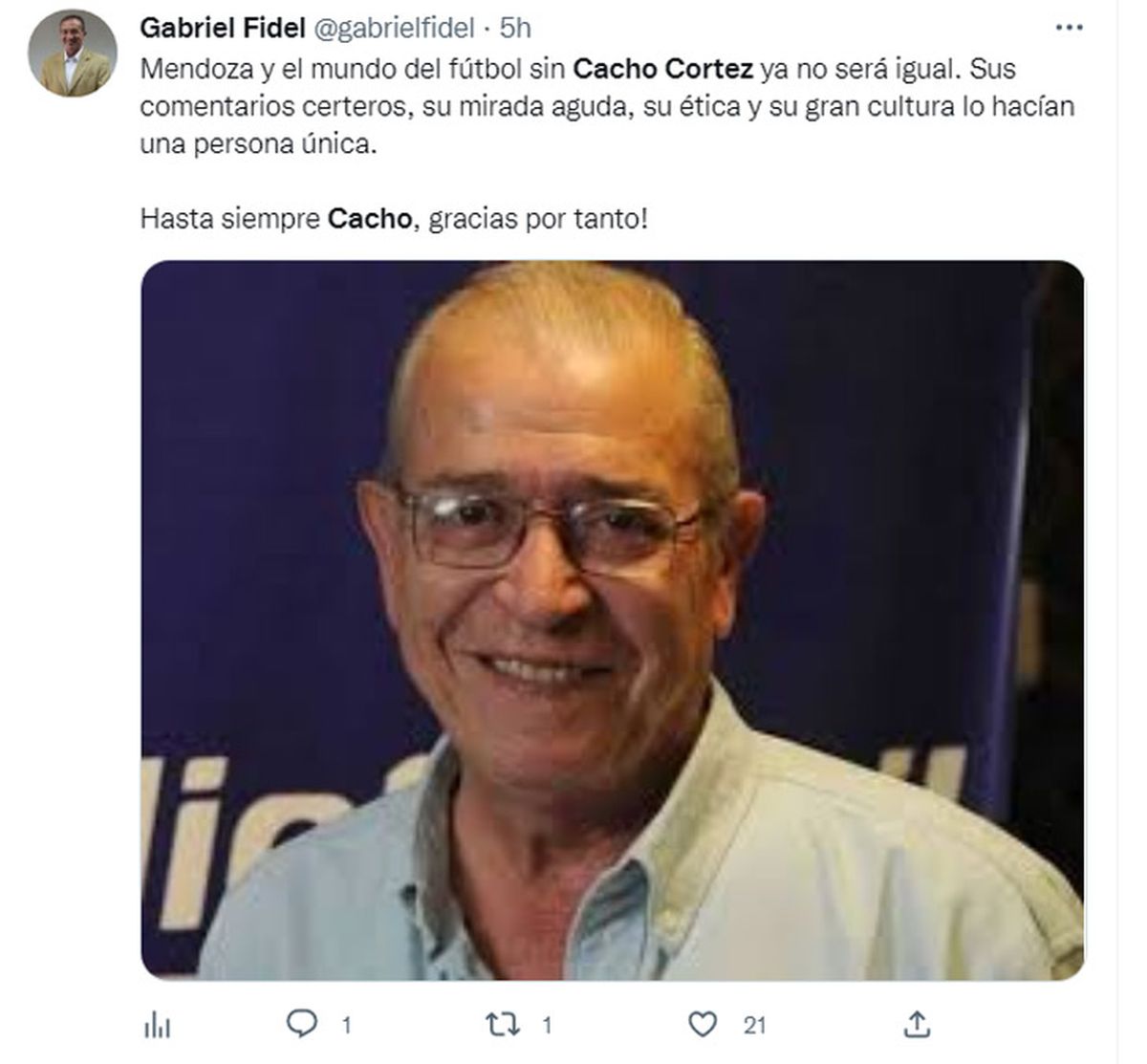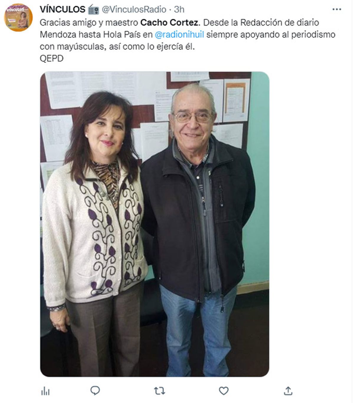 Apasionado por el periodismo, Cacho Cortez, una de las voces más respetadas en la radio mendocina, provocó una gran tristeza entre sus colegas y amigos, que lo despidieron en las redes sociales con un sentido pesar.