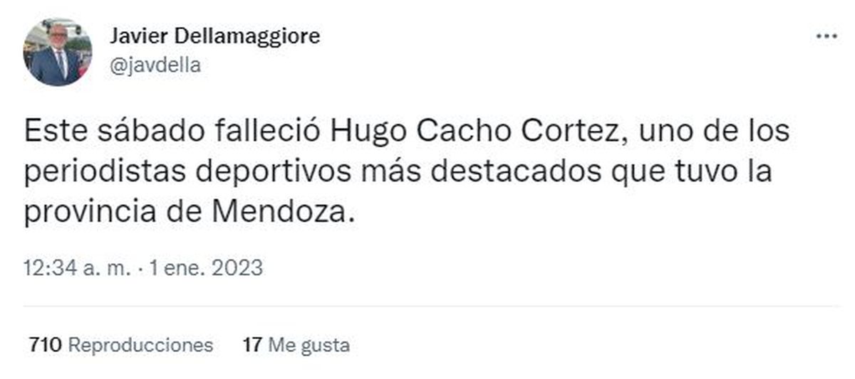 Hugo Cacho Cortez, uno de los periodistas deportivos más talentosos y reconocidos de Mendoza, falleció pocos minutos antes de la llegada del 2023 a los 80 años.