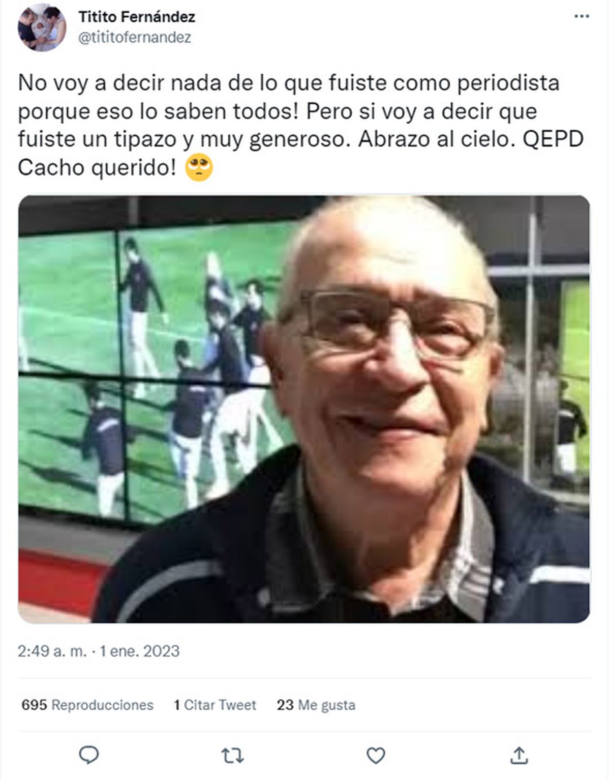 El reconocido periodista murió minutos antes de la llegada del 2023, dejando un profundo dolor en el ambiente deportivo de Mendoza. Tenía 80 años