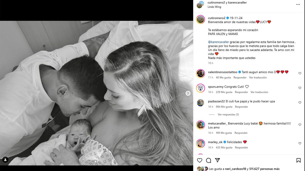 Romero, por su parte, reposteó la historia en Instagram y agregó: “Bienvenida amor de mi vida Lucy”.