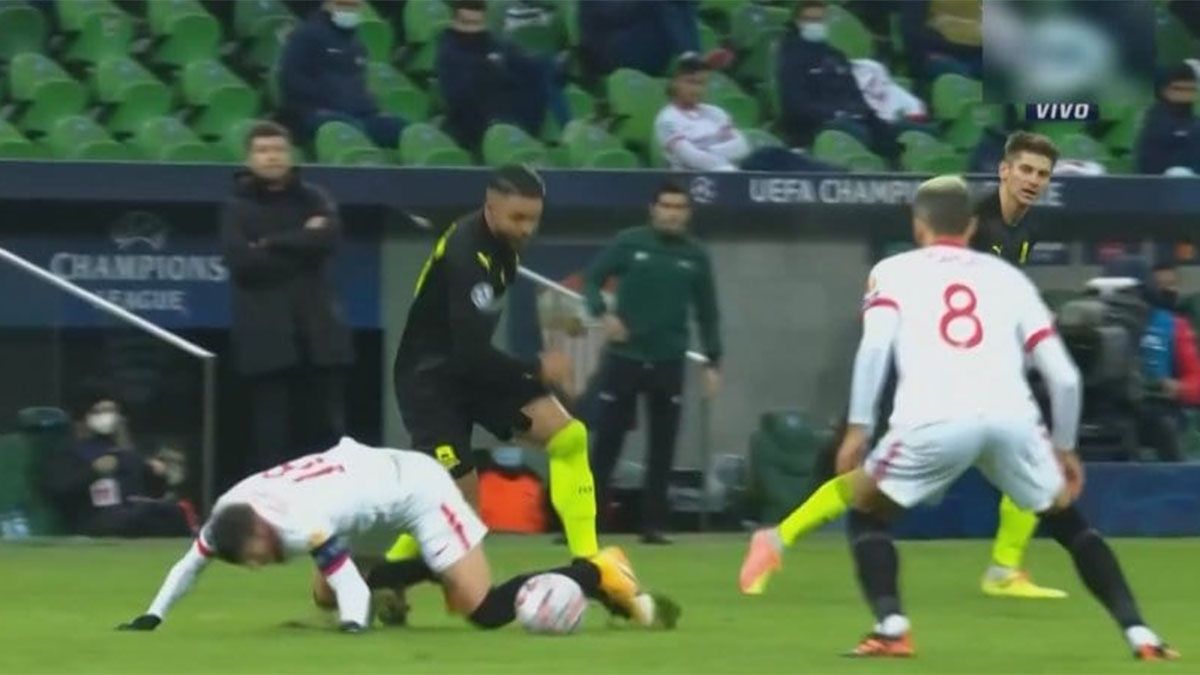 El jugador de Sevilla de España Sergio Escudero sufrió una terrible lesión en el partido de este martes frente a Krasnodar de Rusia, por la cuarta fecha del Grupo E de la Champions League.