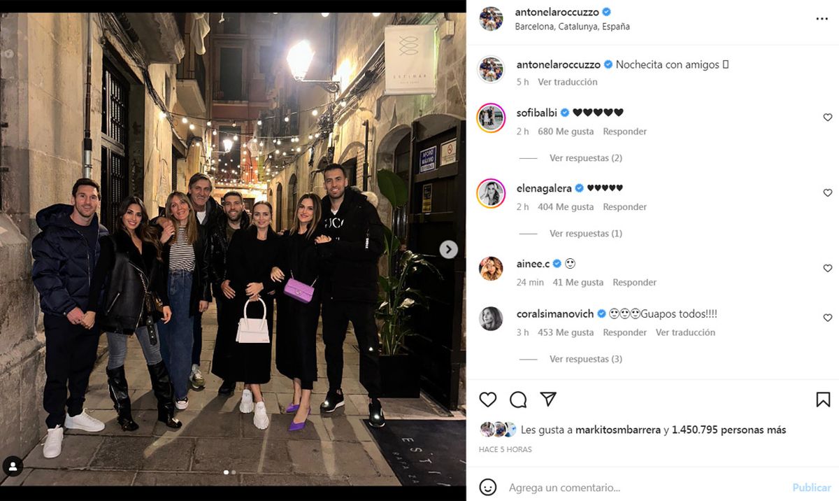 En las fotos se los puede ver junto a los ex compañeros de Lionel Messi en el Barcelona, Jordi Alba y Sergio Busquets, y Pepe Costa la mano de derecha de la Pulga cuando estaba en el azulgrana, todos con sus respectivas parejas.