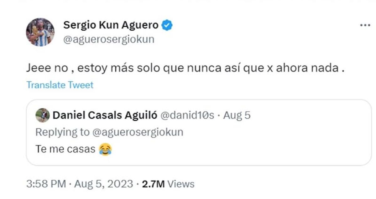 En los últimos días, Sergio Kun Agüero dijo que ya no estaba en pareja con Sofía Calzetti, al responder a un seguidor a la pregunta sobre un posible casamiento diciendo que estaba solo.