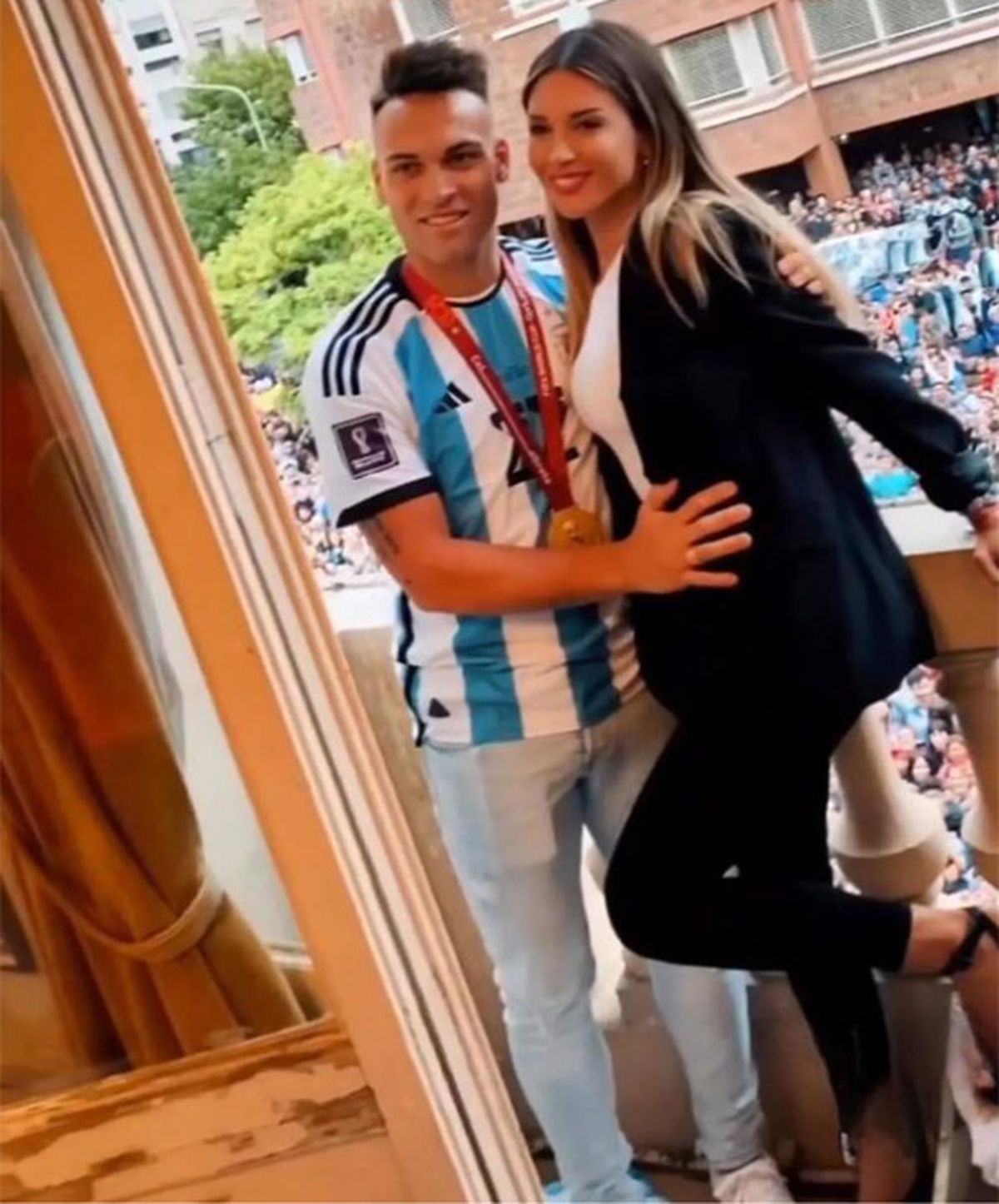 Se basan en una fotografía que, tanto Agustina Gandolfo y Lautaro Martínez, se tomaron durante los festejos en Bahía Blanca, de donde es oriundo el delantero argentino y donde fue declarado “Ciudadano ilustre”.
