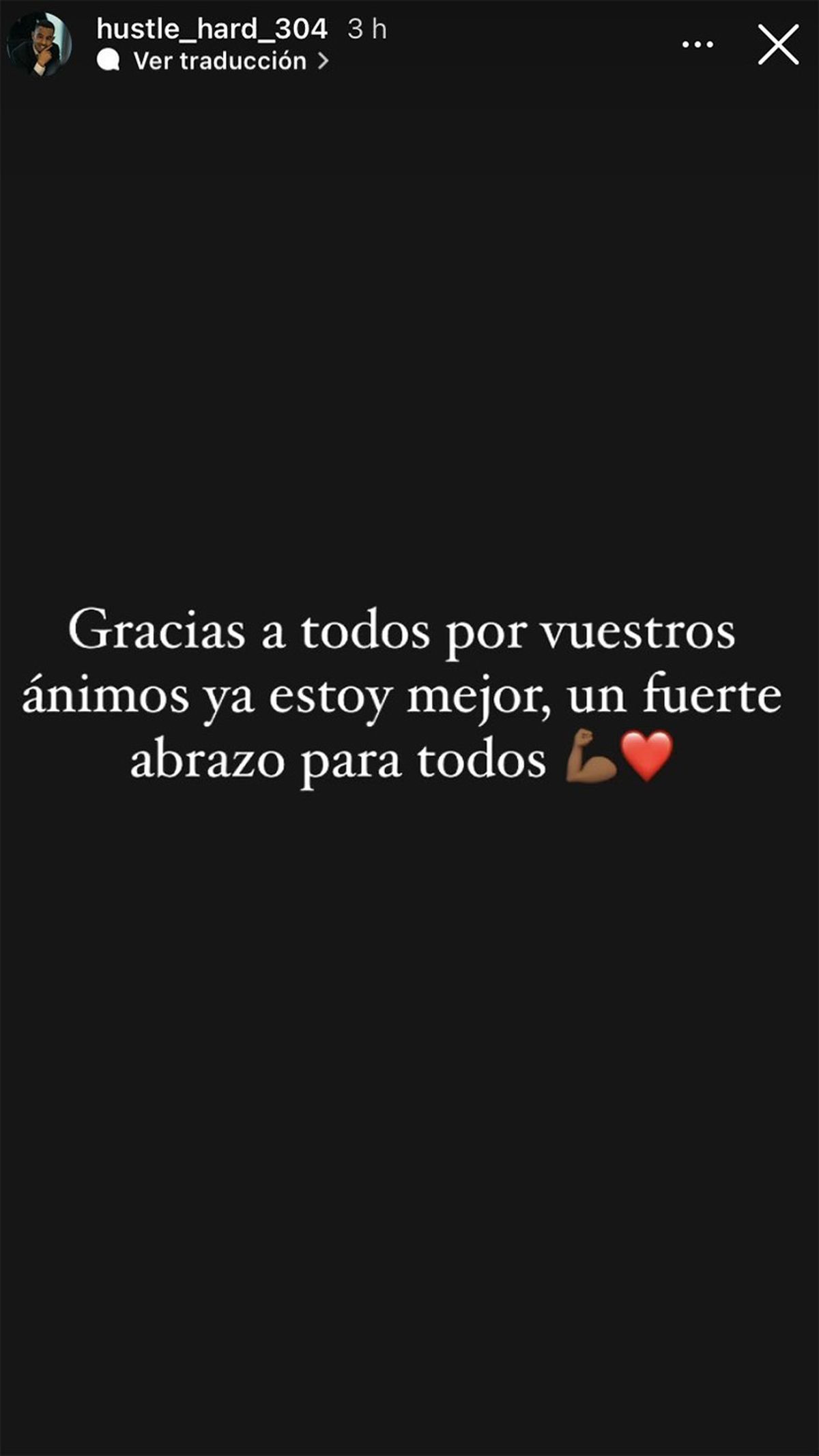 "Gracias a todos por vuestros ánimos, ya estoy mejor. Un fuerte abrazo para todos", fue le mensaje que emitió en una historia en Instagram.