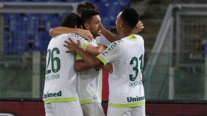 Ruschel, de 28 años, apuntó arrodillado con los índices hacia el cielo en memoria de sus ex compañeros de equipo y cuerpo técnico, quienes perdieron la vida en el accidente ocurrido en Colombia en la previa de la ida de la final de la Copa Sudamericana ante Atlético Nacional.