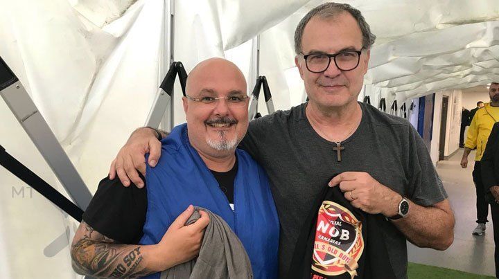 El fotógrafo, llamado Claudio D'Agostino Pérez, se acercó al Loco con la remera y este lo recibió con un abrazo. El twitter oficial del Leeds se hizo eco del gesto del DT, que sorprendió por su buena predisposición.