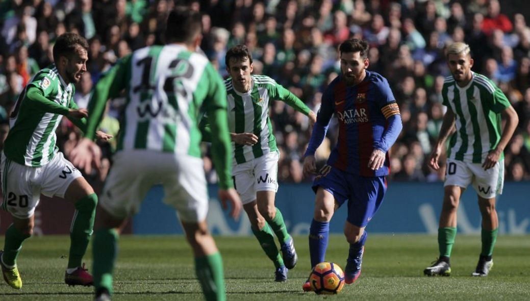El Barcelona (2°) salvó un punto en el estadio del Betis (13°) gracias a un gol en el último minuto del uruguayo Luis Suárez, este domingo en la 20ª jornada del campeonato español, en la que el líder Real Madrid podría ampliar su ventaja con los azulgranas. Los blancos, que se enfrentan más tarde a la Real Sociedad (5°), cuentan 43 puntos, aunque con un partido menos. El Barcelona tiene 42, así como el Sevilla (3°), que visita al Espanyol (10°). En uno de los peores partidos del Barcelona esta temporada, el Betis se adelantó en el minuto 75 de Alex Alegría. Los azulgranas lograron empatar con un gol de Suárez tras un pase de Lionel Messi (90). Fue el 16° tanto del uruguayo, máximo realizador del campeonato con un tanto de ventaja sobre su compañero argentino.El final del partido estuvo marcado por una acción anterior, cuando el defensa argelino del Betis Aissa Mandi despejó un balón que había superado completamente la línea de gol (76). El árbitro no vio la acción. El gol que increíblemente no cobraron a favor de Barcelona:
