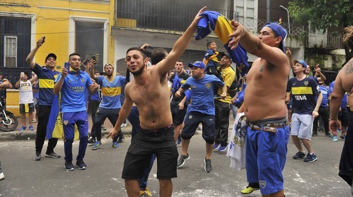 Los hinchas de Boca Juniors formaban colas de hasta cuatro cuadras para ingresar a La Bombonera, donde se jugará desde las 16 la primera final de la Copa Libertadores de América ante River Plate, con arbitraje del chileno Roberto Tobar.